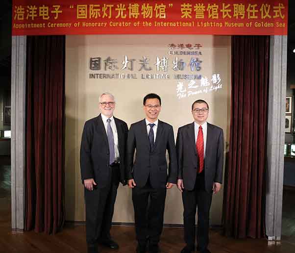 “國際燈光博物館”的前身是“光之力量”(The Power of Light)博物館,它的創(chuàng)始人是《舞臺燈光》(《Stage Lighting》)一書的作者、以色列著名舞臺燈光設計師Dan Redler。2016年廣州市浩洋電子股份有限公司董事長蔣偉楷將其帶到中國,并不斷為博物館加入和完善東方元素尤其是中國專業(yè)燈光歷史元素,進而形成了如今的“國際燈光博物館”。 2017年2月,中國舞臺美術學會會長曹林,國際舞美組織前主席、美國斯坦福大學教授Mr. Michael Ramsaur正式受聘為浩洋電子“國際燈光博物館”榮譽館長,這為促進博物館大發(fā)展、推動在全球范圍內的合作共建奠定了良好基礎,也為推進浩洋電子與國際舞美組織和中國舞美學會的進一步深度合作打開了新的局面,相信兩位榮譽館長加入?yún)⑴c博物館的管理與建設,必將引領國際燈光博物館未來發(fā)展邁向新臺階,為推動國內外戲劇燈光歷史傳承與發(fā)展、推進科技與文化藝術的融合發(fā)揮更大作用。