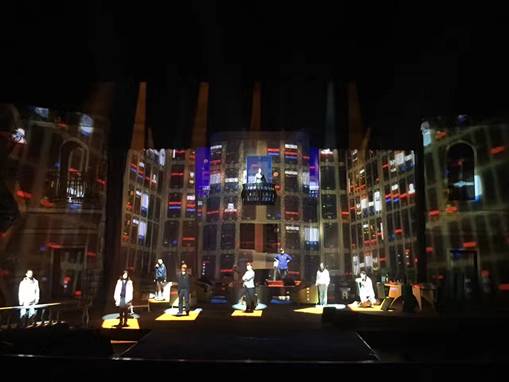 該劇有對人物靈魂的拷問、對人性的追問,也有對生命意義的表達,在雄渾凝重的燈光設(shè)計風(fēng)格上,著重呈現(xiàn)劇目的人物塑造。該劇中,LED切割燈GL-6和LED圖案燈GL-5,承擔了劇目面光和舞臺特效的作用,憑借高亮度、均勻的光斑、全面的功能和穩(wěn)定的運轉(zhuǎn),成功為該劇護航。尤其是LED燈具在調(diào)光、頻閃上更加細膩線性的表現(xiàn),有助于劇情傳達更加微妙細致的情感。另外,天幕燈C5的八色混色,讓色域?qū)拸V、換色細膩,投光式渲染法使得效果均勻自然、一致性高,渲染劇場氣氛。