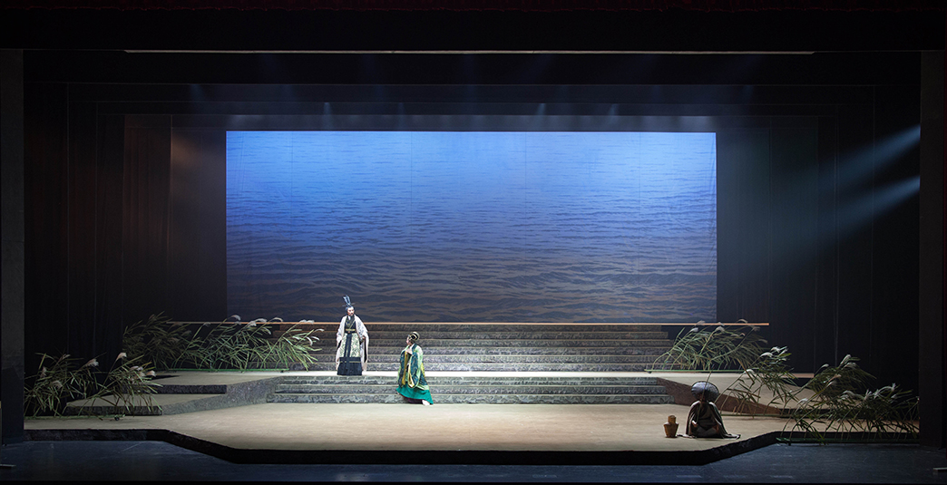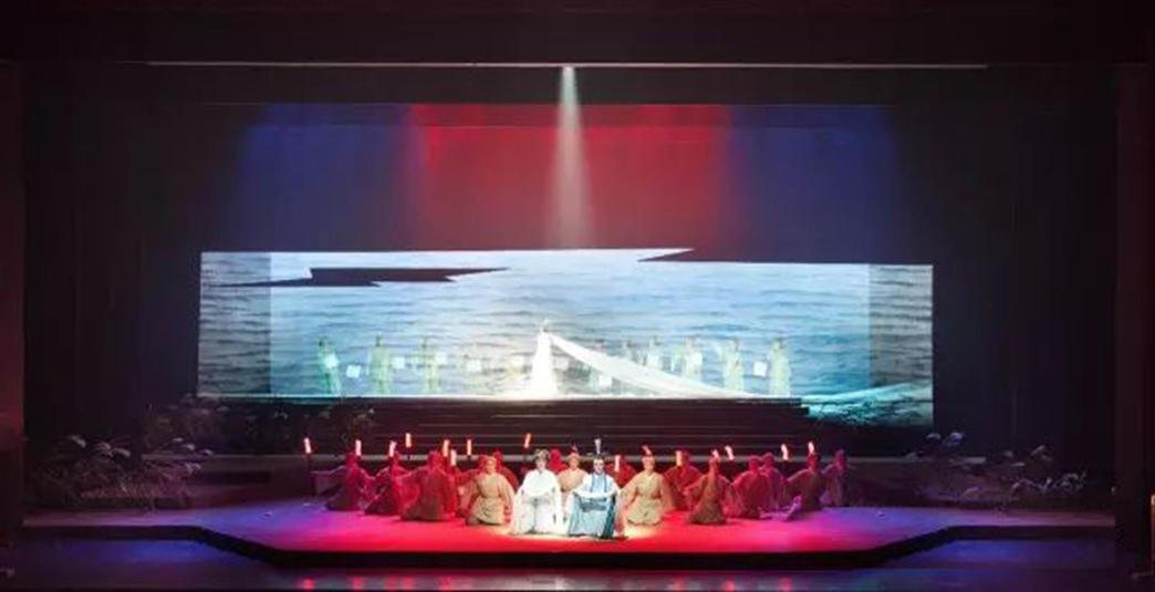 新編越劇《屈原》講述了春秋戰(zhàn)國時期楚國左徒屈原欲推行“美政”,卻因奸人排擠慘遭流放,最終投江而亡的悲壯故事。該劇立意高遠、深刻、厚重,劇情跌宕起伏,對燈光設(shè)計的要求也非常高,既要體現(xiàn)出該劇的厚重歷史感,又要呈現(xiàn)江南越劇婉轉(zhuǎn)風韻。