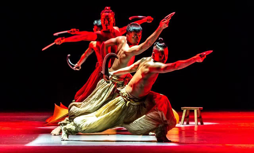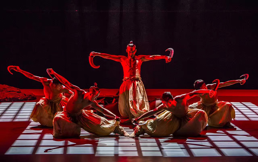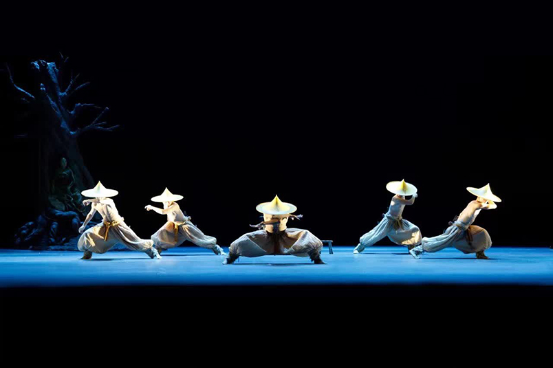 《巫卡調(diào)恰》的漢語意思是外婆的歌謠,這部舞蹈詩的創(chuàng)作植根于當(dāng)?shù)孛缱逦幕?,又拓展到整個苗族社會,通過巫卡(外婆)吟唱古歌這一主線,詮釋了苗族遷徙史以及苗族社會生活的各種習(xí)俗,具有強烈形式感和邏輯性。