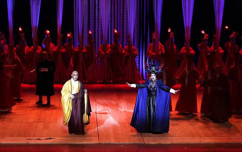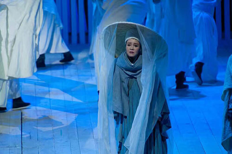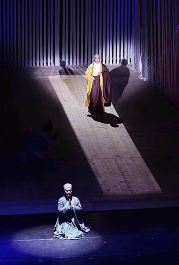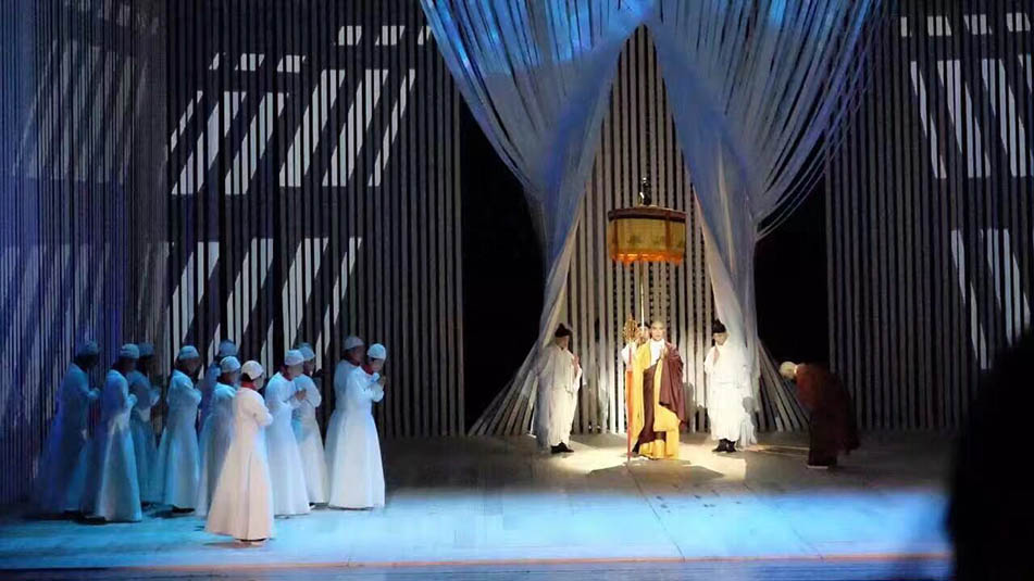 歌劇《鑒真東渡》的導(dǎo)演,國家一級編導(dǎo)邢時(shí)苗老師介紹,歌劇《鑒真東渡》原定是12月22日、23日在日本的奈良首演。后來有人建議,能不能在東京演出一場。于是,他就在東京尋找合適的演出場所。恰巧有個(gè)合適的劇院,20日那天有檔期。簽下演出合同之后,邢時(shí)苗老師才發(fā)覺,在1200多年前,鑒真成功東渡到日本的日期,恰恰就是12月20日。這是一次巧合,更是對鑒真大師的致敬。