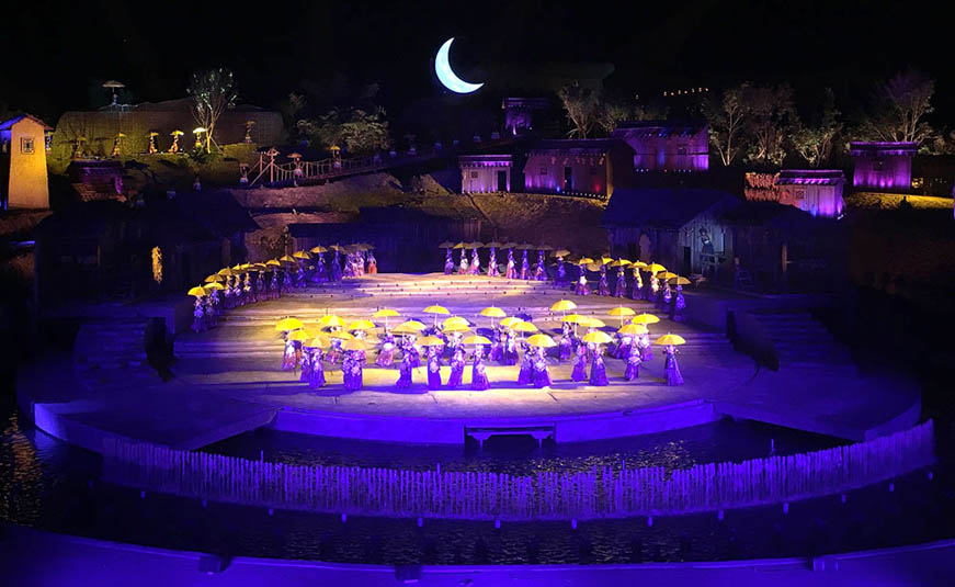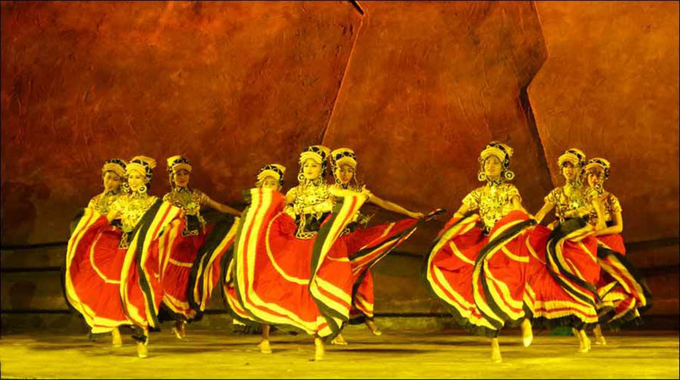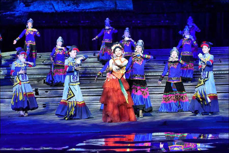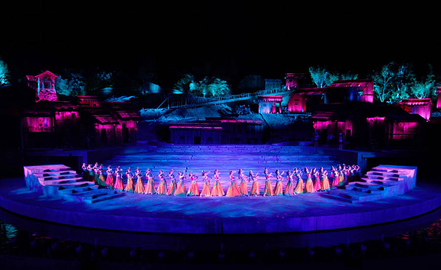 《阿惹妞》是目前中國(guó)第一臺(tái)火秀實(shí)景劇,該劇全長(zhǎng)60分鐘,共分為5個(gè)篇章,從民族源起的腳步展開(kāi),講述了阿惹妞情與愛(ài)的生命畫(huà)卷。該劇以“火”作為彝族的生命圖騰貫穿始終,呈現(xiàn)了“火”作為一個(gè)民族情感的載體而展開(kāi)的生命傳奇,具有濃厚的彝族文化風(fēng)情。