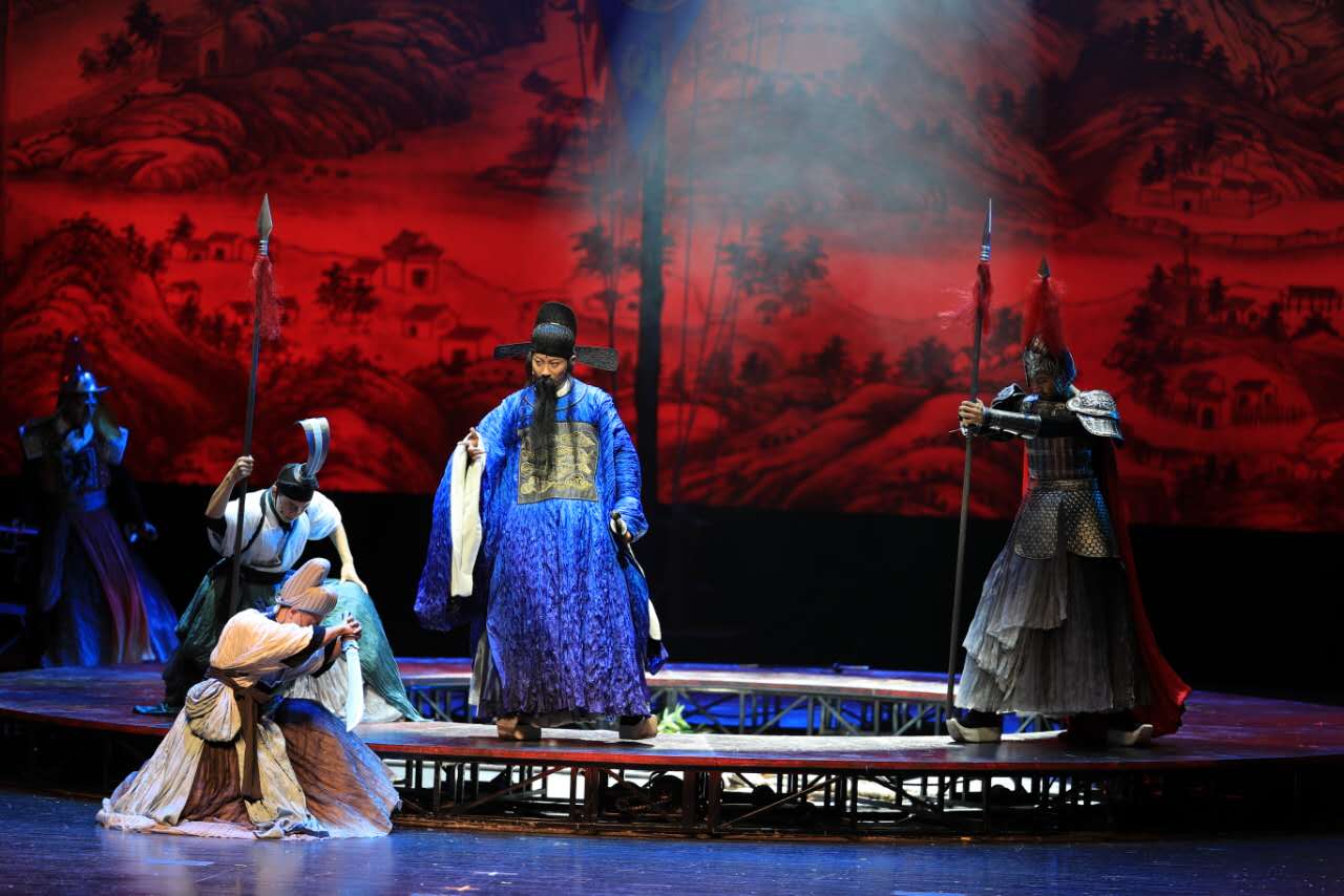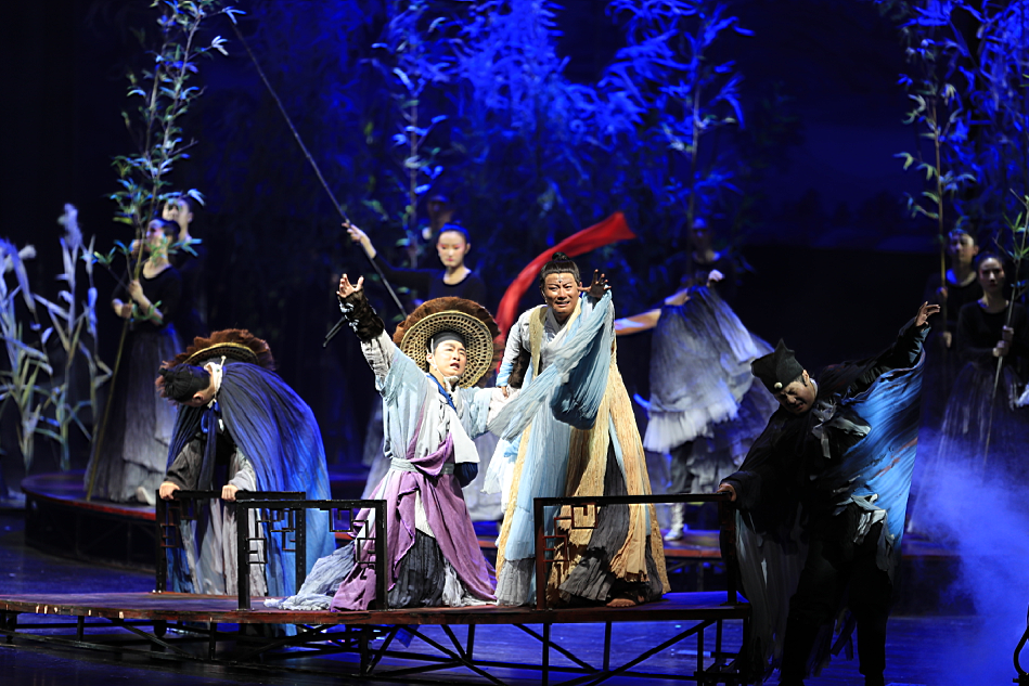 據(jù)導(dǎo)演宮曉東介紹,該劇在舞臺的呈現(xiàn)上別具風(fēng)格,特別運(yùn)用幾塊可移動的平臺打破傳統(tǒng)的寫實(shí)手法,演員們在上面可表現(xiàn)出攀山越嶺、行舟涉水的情景。全劇除了背景音樂,所有的音效如狂風(fēng)、水流、濃霧、雷鳴、鳥鳴等也都是由演員現(xiàn)場制作。劇中還融合了中國戲曲、古典民樂、現(xiàn)代舞蹈、民族文化等多種表現(xiàn)元素。另外,觀眾們還能看到演員現(xiàn)場換服裝、候場……這樣的創(chuàng)新,打造出一部極強(qiáng)現(xiàn)代感的歷史劇。在首演結(jié)束后,在場的專家、領(lǐng)導(dǎo)和觀眾們都對該劇予以一致好評。