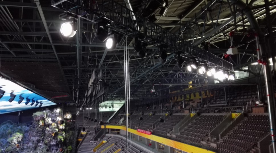 近日,由北京大風(fēng)文化藝術(shù)投資有限公司創(chuàng)意、編劇、策劃并組織中外杰出藝術(shù)家、工程師團(tuán)隊(duì)制作,南寧八菱科技股份有限公司、北京演藝集團(tuán)聯(lián)合出品的大型全景科幻演出《遠(yuǎn)去的恐龍》在北京國家體育館震撼上演。浩洋電子300多臺專業(yè)舞臺燈具:LED切割燈GL6、LED圖案燈GL5、高亮LED搖頭染色燈GLW20QZ、防水染色燈IG220D等實(shí)力助陣大型全景科幻演出《遠(yuǎn)去的恐龍》揭開神秘面紗。