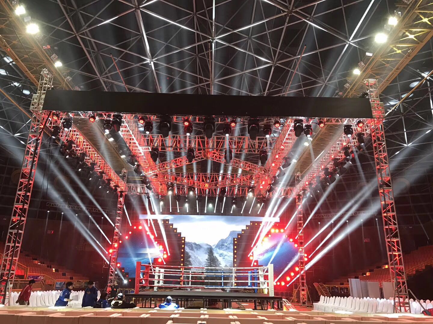 由昆明品諾文化傳播有限公司提供的120多臺浩洋電子專業(yè)舞臺燈光:光束燈G9B、光束燈PT320B、BEAM330等也為大賽提供了足力的燈光支持,銳利的光束、更強的穿透力照亮了賽事擂臺,為總決賽打造一場精彩絕倫的格斗盛宴。