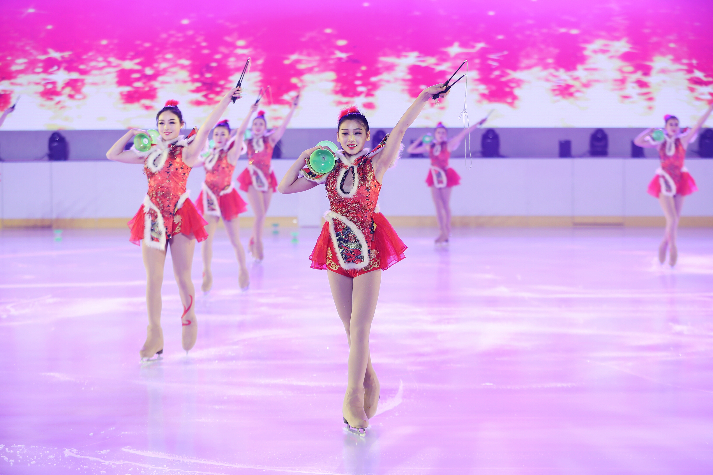 令人驚艷的冰上雜技表演;冰雪仙子、卡通雪娃娃、老年人、青年人跟隨冬奧冠軍在冰上翩翩起舞;專(zhuān)業(yè)花樣滑冰組合表演高難度花滑互動(dòng)等冰雪演出贏得觀眾陣陣掌聲。