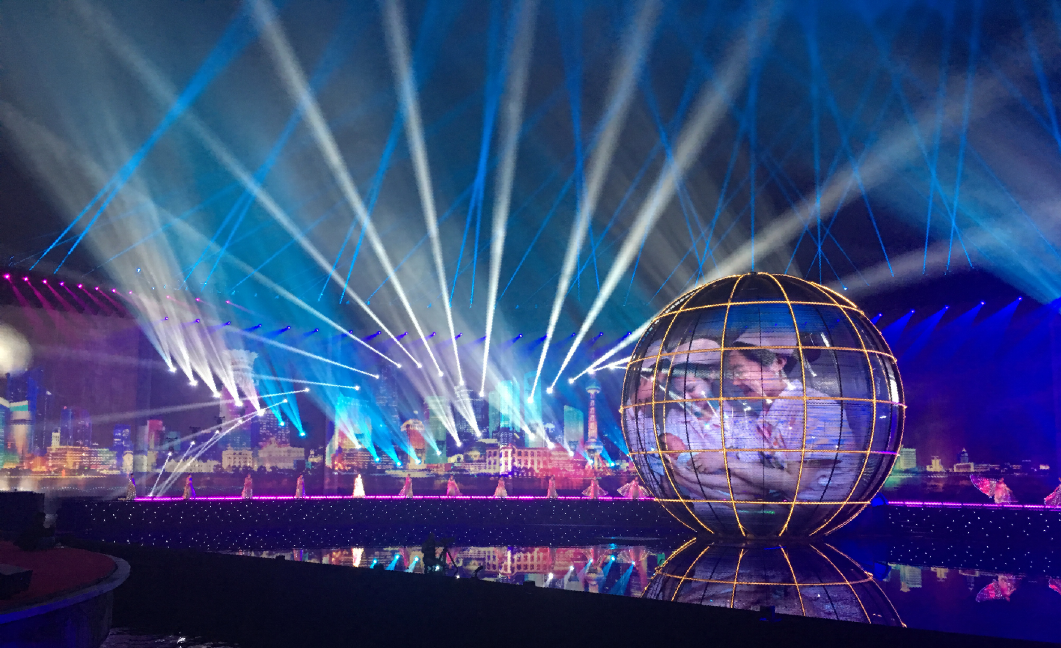 ? ? ? 特別在本次燈光焰火演出中,浩洋電子的飛燈系統(tǒng)依然成為了一大亮點(diǎn),與眾不同的是,浩洋飛燈系統(tǒng)打破了“燈位不動(dòng),只有光在運(yùn)動(dòng)”的限制,讓電腦燈本身也運(yùn)動(dòng)起來(lái),自由翱翔,實(shí)現(xiàn)從“光的運(yùn)動(dòng)”到“運(yùn)動(dòng)的光”著巨大的轉(zhuǎn)變。浩洋飛燈系統(tǒng)的研發(fā)是與2016年9月杭州G20峰會(huì)文藝演出《最憶是杭州》息息相關(guān),當(dāng)時(shí)的總制作人著名燈光設(shè)計(jì)沙曉嵐提出“舞蹈演員吊掛著威亞,從外湖飛入西湖演出舞臺(tái)”的設(shè)想,與合作方浩洋電子進(jìn)行了大量的研發(fā)試驗(yàn),但由于西湖的地理位置限制,這個(gè)創(chuàng)意未能實(shí)現(xiàn),研發(fā)的成果也保留了下來(lái),最終在2017年的央視春晚桂林分會(huì)場(chǎng)實(shí)現(xiàn)了浩洋飛燈系統(tǒng)的全球首秀。在本次上海合作組織青島峰會(huì)燈光焰火藝術(shù)表演中,浩洋飛燈系統(tǒng)以創(chuàng)新科技化燈光震撼獻(xiàn)力國(guó)家重要演出活動(dòng),勾勒出一幅科技燈光與文化相融合的視覺(jué)美景。