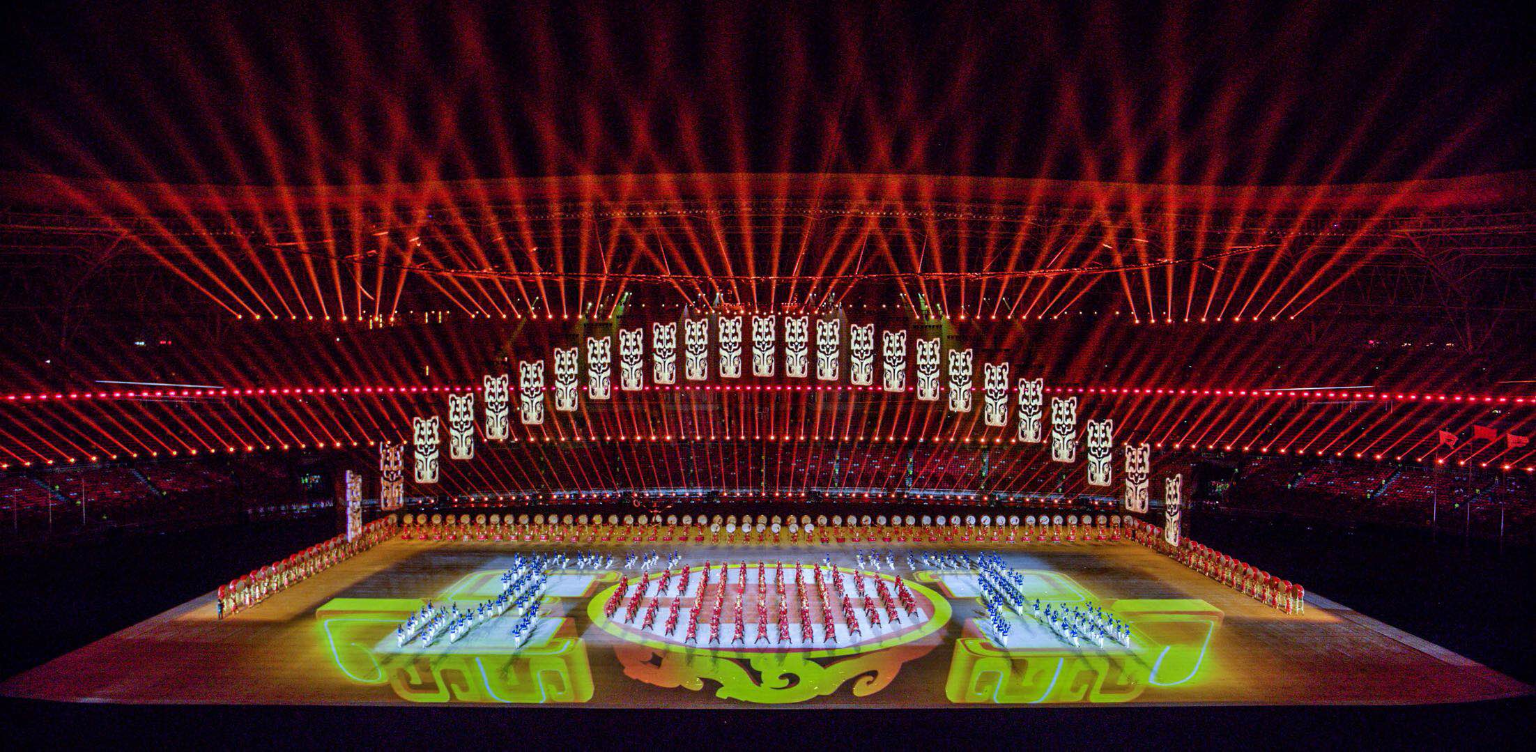 運(yùn)動(dòng)會(huì)開閉幕式整體設(shè)計(jì)的核心理念為“奮斗幸福觀”,開幕式的主題為“奮斗新時(shí)代“,閉幕式將以“幸福新征程”為主題與之呼應(yīng)。開幕式演出運(yùn)用了大型燈光設(shè)備、舞臺(tái)機(jī)械裝置、高清投影設(shè)備、懸掛表演裝置、先進(jìn)音響設(shè)備、空中飛行設(shè)備等多種技術(shù)手段,形成地面、舞臺(tái)、空中三維藝術(shù)呈現(xiàn)形式,將中國(guó)傳統(tǒng)文化與國(guó)際先進(jìn)科技進(jìn)行完美結(jié)合,形成一臺(tái)國(guó)際化高水準(zhǔn)的全景化演出。