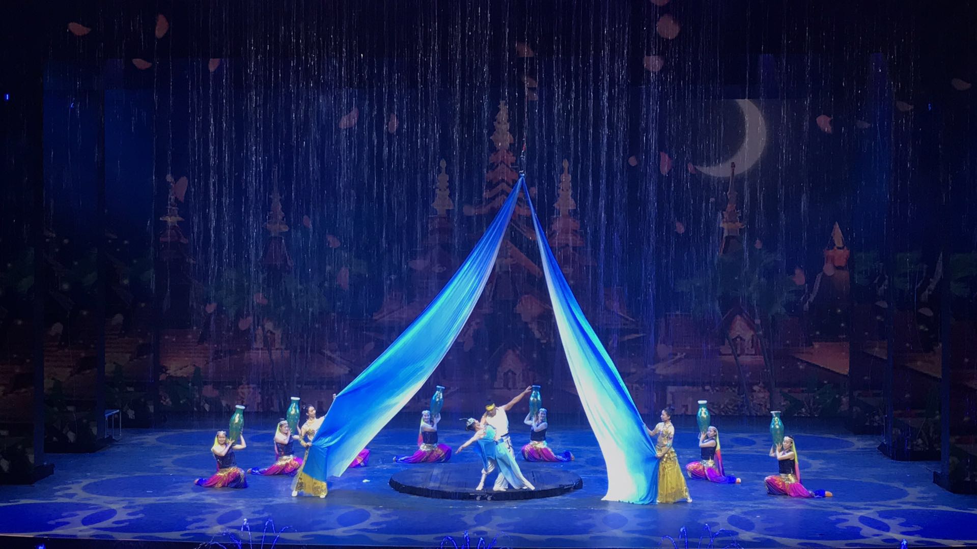 從歷史的長河中切回現(xiàn)場,耳目一新的立體效果、輕松活潑的音樂節(jié)奏、現(xiàn)代一流的燈光舞美、嫻熟自然的雜技表演,將觀眾帶入了吳橋雜技藝術的歷史故事中。