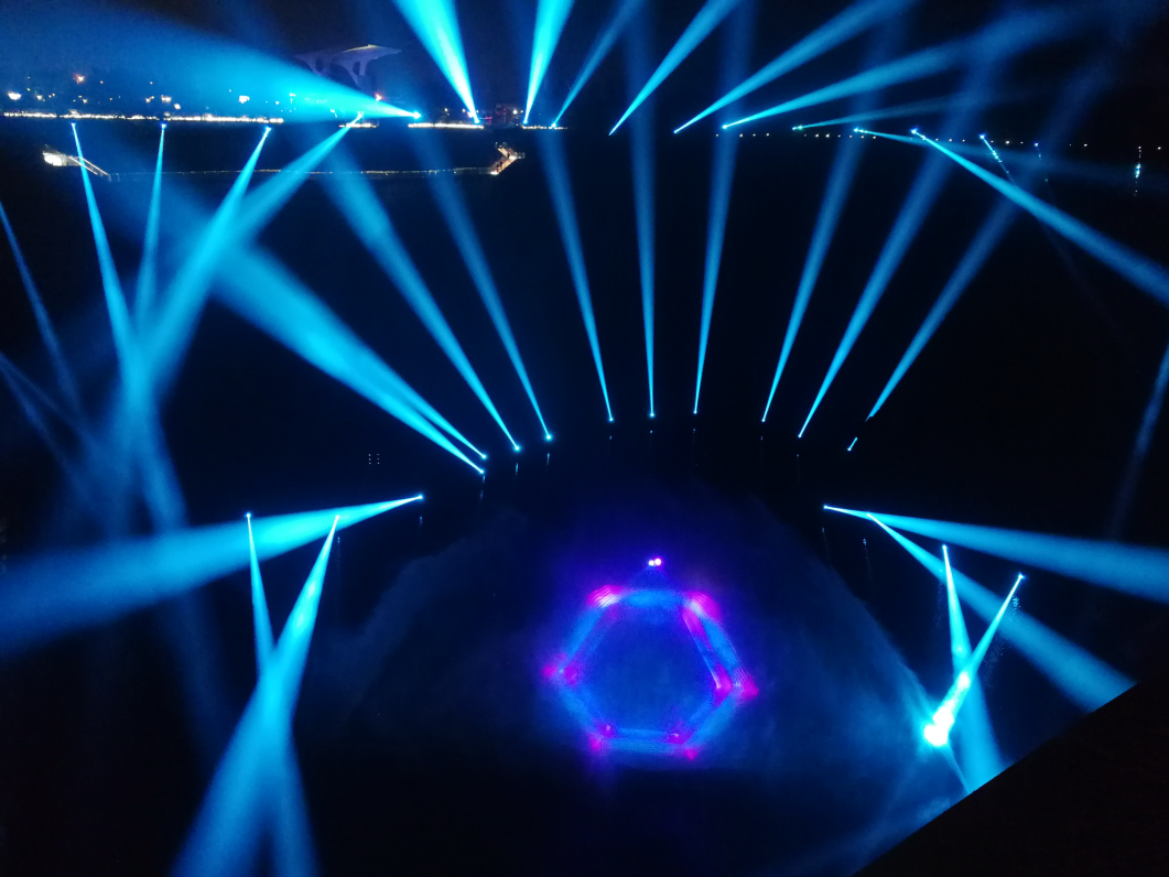 這場在上海佘山世貿洲際酒店驚艷上演的大型奇境光影水秀《ECHO 回響》,由魚果文化科技籌備1年傾力打造,清華大學美術學院信息藝術設計系副教授王之綱擔任總導演,浩洋電子承擔了從產品設計、系統(tǒng)集成設計、設備供應、安裝實施、產品應用、彩排合成到技術服務支持的全部燈光工程項目。特別是在燈光設備的選用方面,浩洋防水系列產品經過多方技術可行性評測與實測,從多家燈光企業(yè)激烈的競爭中脫穎而出被選定,成為甲方指定的合作品牌方。