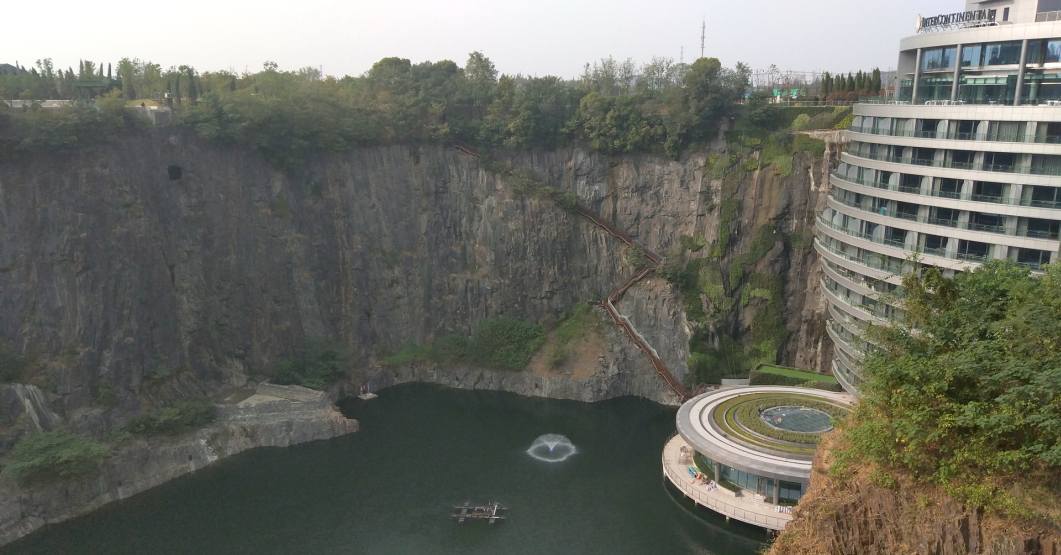 上海佘山世貿洲際酒店(又名“世茂深坑酒店”),位于上海松江國家風景區(qū)佘山腳下,造價20億、耗時12年,酒店的特別之處在于它是巧奪天工在廢棄采石礦坑內建成,深入地下88米,是至今世界海拔最低的酒店,其革命性的先鋒建筑設計已被美國國家地理頻道《世界偉大工程巡禮》評為“世界十大建筑奇跡”之一。