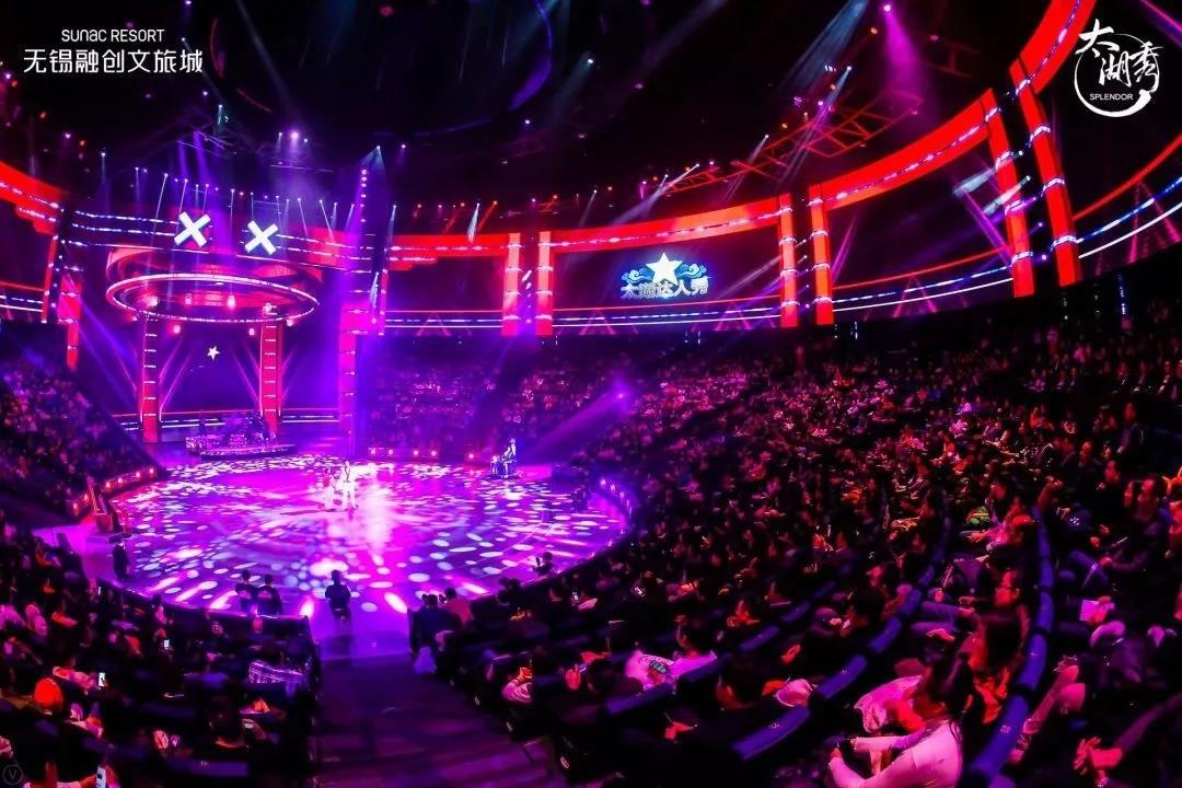 太湖秀劇場的創(chuàng)作靈感來自于江南特色的“竹林”,外圍是365根層疊錯(cuò)落的仿竹鋼立柱,屋頂使用不規(guī)則的三角形金屬百葉板進(jìn)行裝飾。3萬平米的劇場內(nèi),直徑16米的主舞臺可實(shí)現(xiàn)360°旋轉(zhuǎn)、2米升降和10°傾斜,空中1800㎡的360°環(huán)形LED大屏嚴(yán)絲合縫,配合11臺高速布景吊機(jī)、22個(gè)高速雜技卷揚(yáng)機(jī)、500多個(gè)高空舞美吊點(diǎn)打造沉浸式的視覺盛宴,此外還有先進(jìn)的高空3D噴泉和舞臺水處理系統(tǒng),可以實(shí)現(xiàn)干舞臺和水舞臺的快速切換。