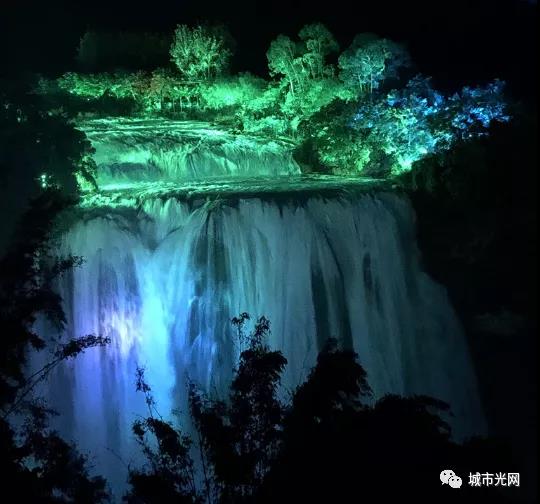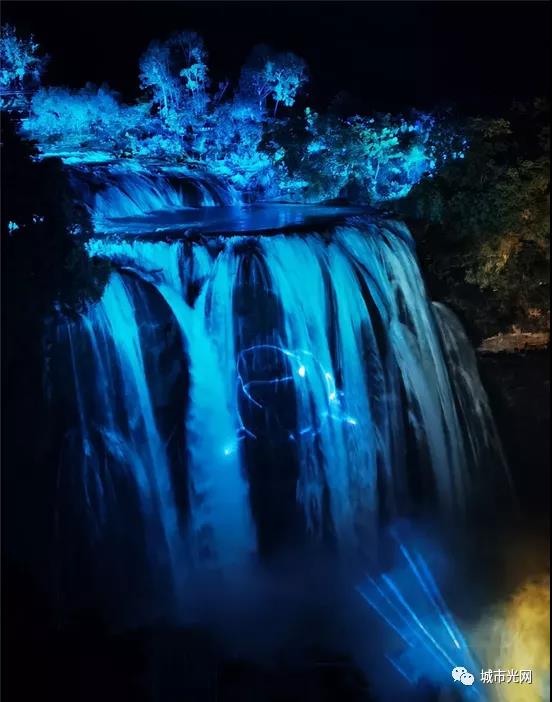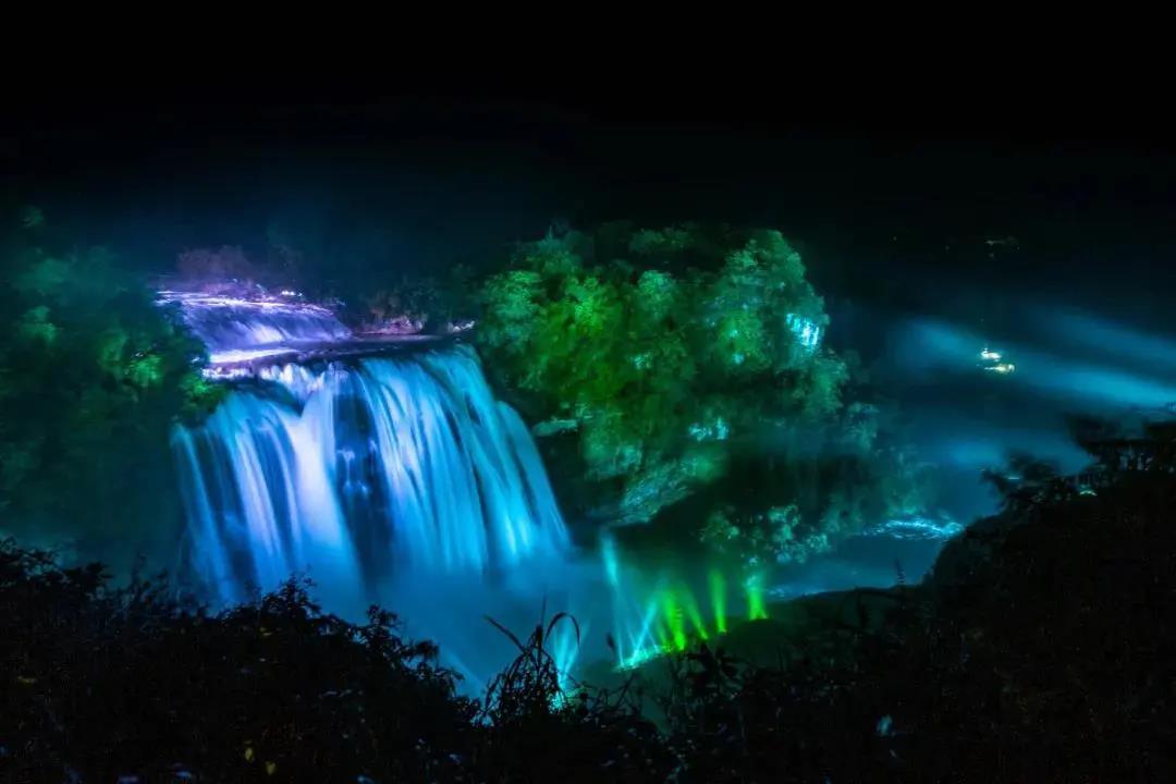 《黃果樹夜游》是國(guó)內(nèi)首個(gè)自然峽谷5A景區(qū)沉浸式全景體驗(yàn)光雕影像秀。