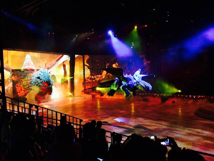 《馴龍高手》被演出方定義為超視景LIVE秀,故事改編自曾獲奧斯卡多項提名的同名電影《馴龍高手》維京少年Hiccup(小嗝嗝)和他的龍Toothless(夜煞)之間的故事。該劇采用了高科技仿真模擬技術(shù),也是全球巡演史上運用電子動畫技術(shù)最多的一次現(xiàn)場秀。電影版《馴龍高手》上映已4年之久,維京人馴龍的故事逐漸被人們淡忘,但隨著《馴龍高手》2的北美上映,再一次激起了沉寂4年的“龍迷”的回憶。