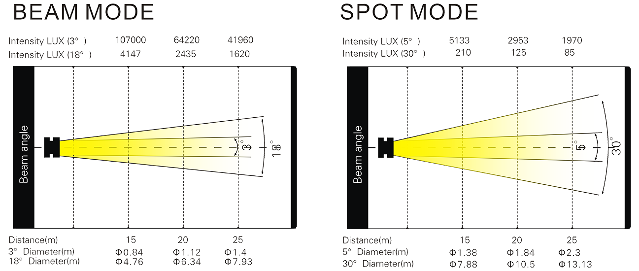 電動放大,光束模式:3°~18°,圖案模式:5°~30°