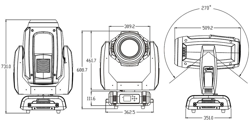 可從控臺完成更改DMX地址碼,遙控開關(guān)燈泡,機器重設(shè),聲控模式的轉(zhuǎn)換等功能