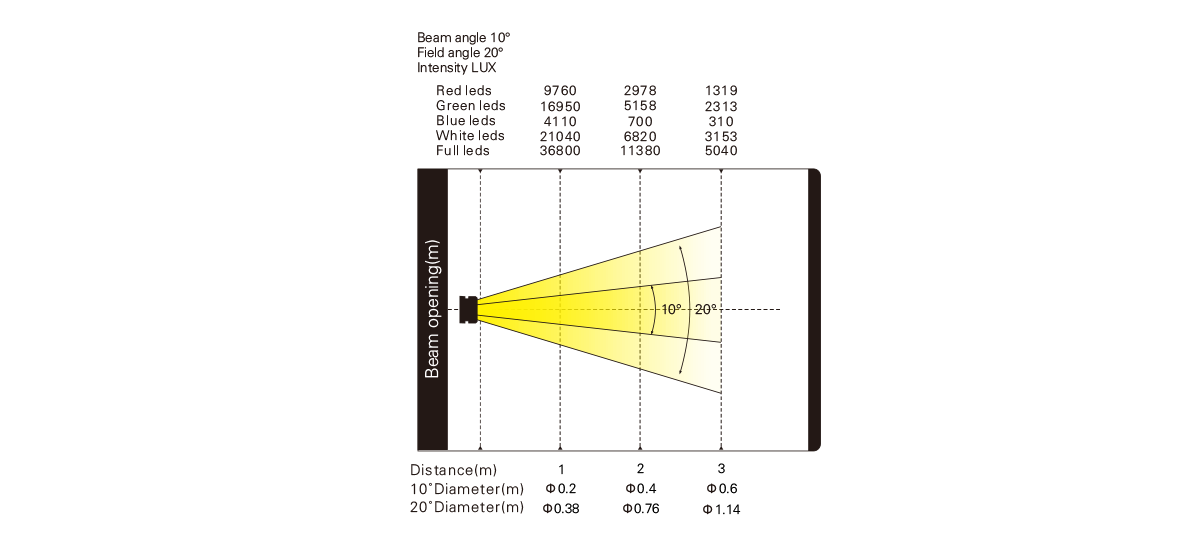 0% - 100% 線性調(diào)光,可同時控制4 個主顏色的明暗變化和閉光