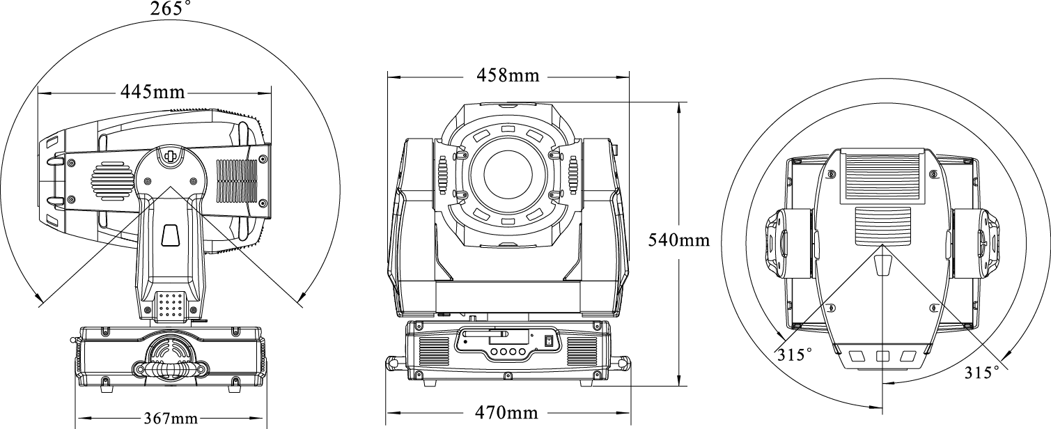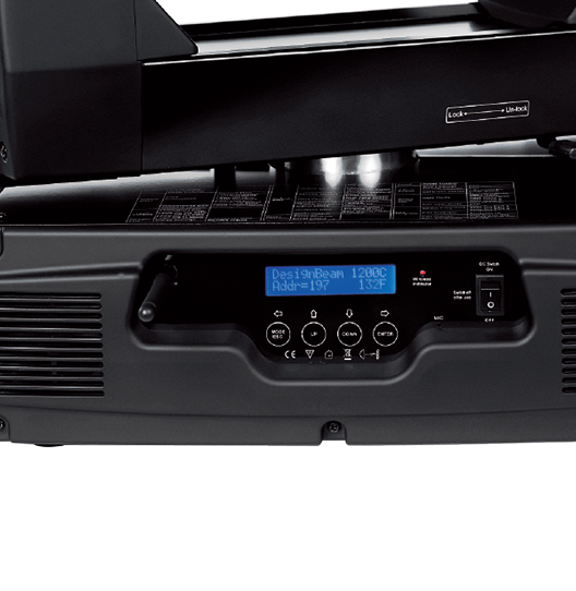 可從控臺(tái)完成更改DMX地址碼,遙控開關(guān)燈泡,機(jī)器重設(shè),聲控模式的轉(zhuǎn)換等功能