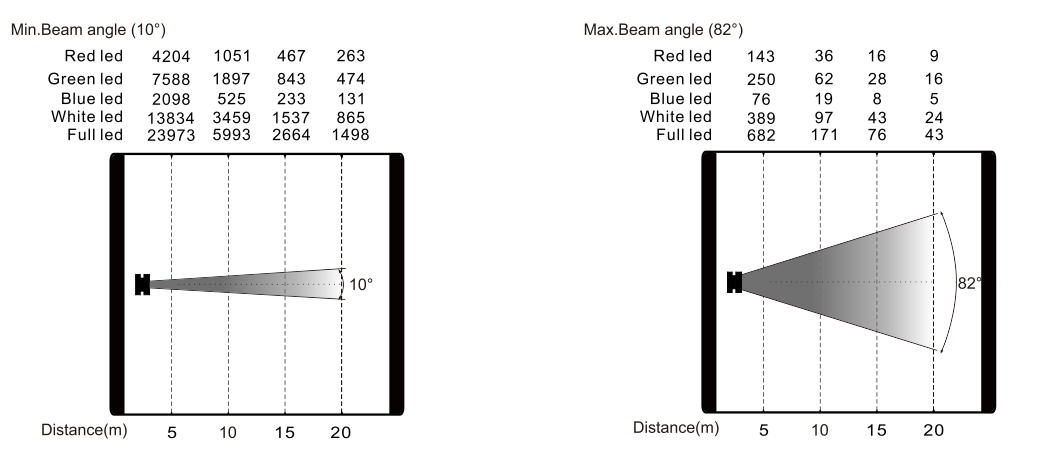 變焦范圍: 4.5°-53°(光束角),10°-82°(光斑角)