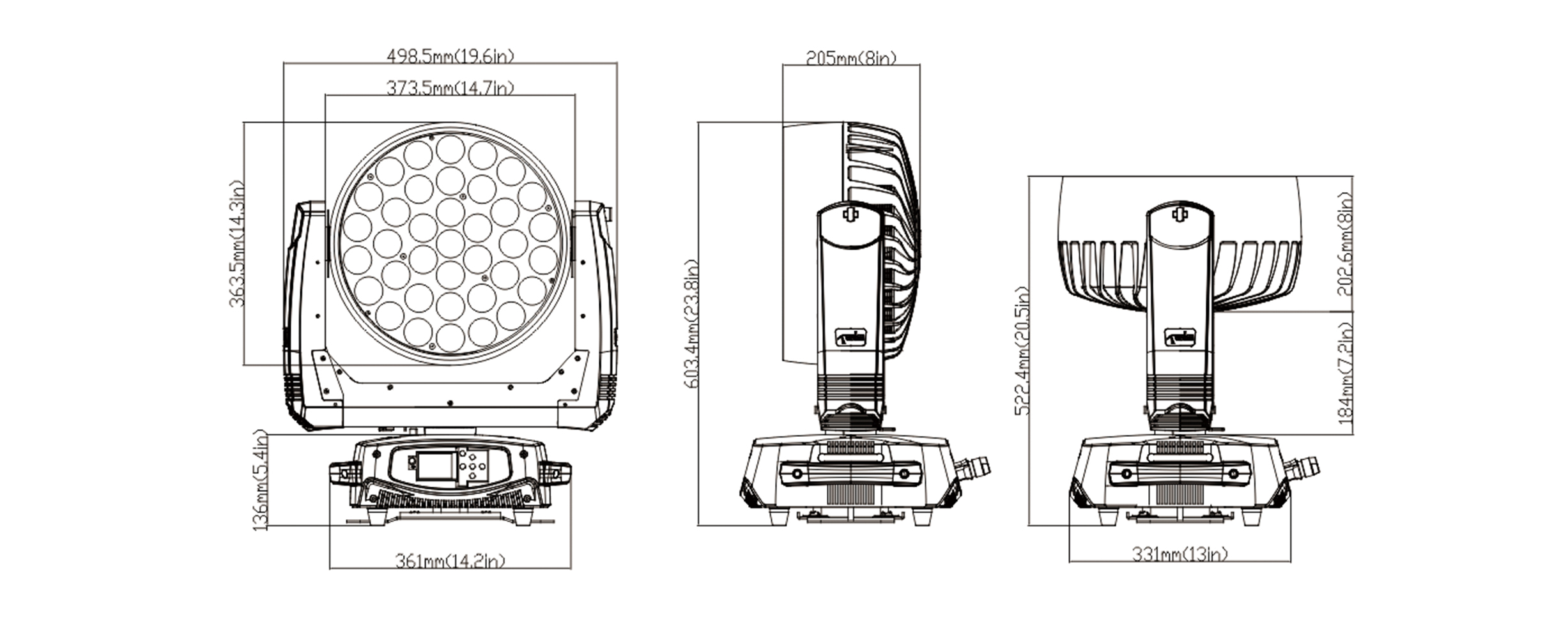光源:37顆20W大功率RGBW 4合1 LED
