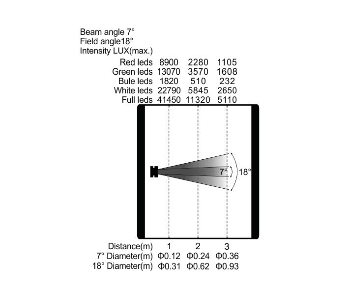 變焦范圍:光束角:7°,光斑角:18°