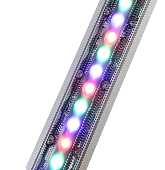 ELV-G 系列RGB / RGBW / RGBA /DW(冷白+暖白) LED染色燈是一款高功率條形燈,單臺(tái)燈長(zhǎng)度可選1英尺(305mm)和4英尺(1229mm),采用國(guó)際通用的DMX512信號(hào)控制,順滑的線(xiàn)性調(diào)光,高亮度輸出, 高檔的外觀(guān)設(shè)計(jì),可選不同角度的柔光片以及擋光防眩板,是戶(hù)外戶(hù)內(nèi)渲染照明,面光燈的最佳選擇。